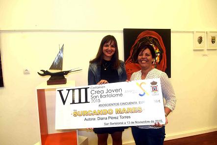 El jurado compuesto por Ramón Arturo Machín Hernández, artesano, ceramista y diseñador gráfico, Marcos Felipe Anaya, profesor de dibujo artístico de la Escuela de Arte Pancho Lasso, Moisés Gutiérrez Medina, ganador del VII Certamen Crea Joven San Bartolomé 2014, actuando como presidente Ramón Arturo Machín Hernández, y como secretario, Felipe de León, sin derecho a voto, otorgaron por unanimidad galardonar tres obras, recayendo los premios en:Con la cantidad de 250€ a la escultura “Surcando Mares” de Diana Pérez Torres, entregando el premio la concejal de cultura del Ayuntamiento de San Bartolomé, Alma González Mauri.