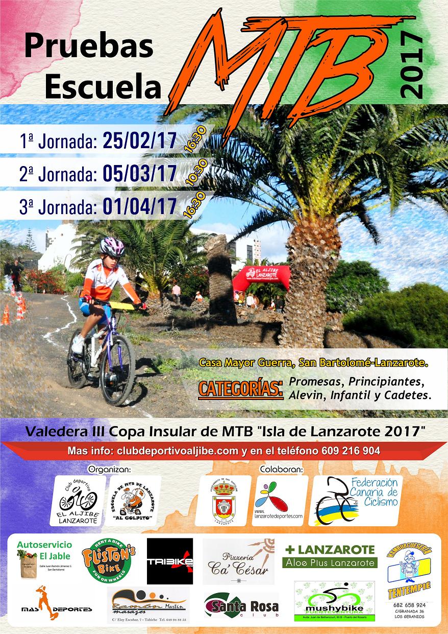 Modalidad: Cross Country o Maratón por Montaña (XC), se compone de 3 pruebas a realizar en fechas diferentes. El recorrido para las 3 es el mismo, desarrollándose en un circuito cerrado de corta distancia donde los participantes tienen que dar un número determinado de vueltas según la categoría en la que participe. Esta prueba será valedera para la  III Copa Insular de Mountain Bike Isla de Lanzarote 2017.