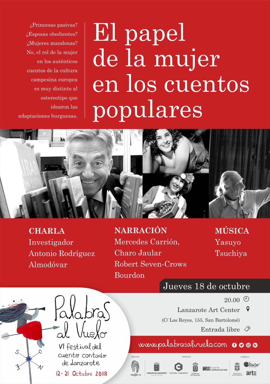 VI Festival del cuento contado de Lanzarote traerá hasta el municipio un tema de actualidad”El papel de la mujer en los cuentos populares”, con charla a cargo del investigador Antonio Rodríguez Almodóvar, narraciones de la mano de Mercedes Carrión, Charo Jaular y Robert Seven-Crowns Bourdon y música de la mano de Yasuyo y Tsuchiya.