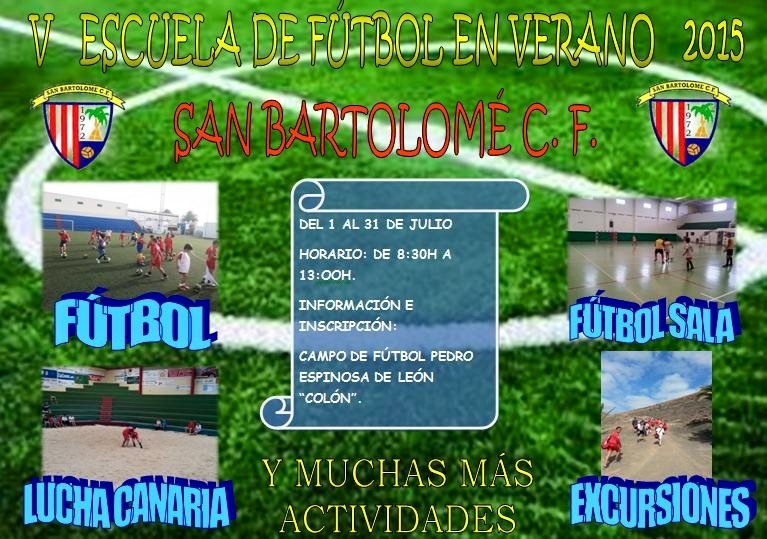 Del 1 al 31 de julio, en las Dependencias del Polideportivo de San Bartolomé se impartirán clases de fútbol, fútbol sala, lucha canaria, bola, juegos al aire libre y además actividades de ocio como excursiones, dentro de la Escuela de verano que organiza el San Bartolomé C.F.