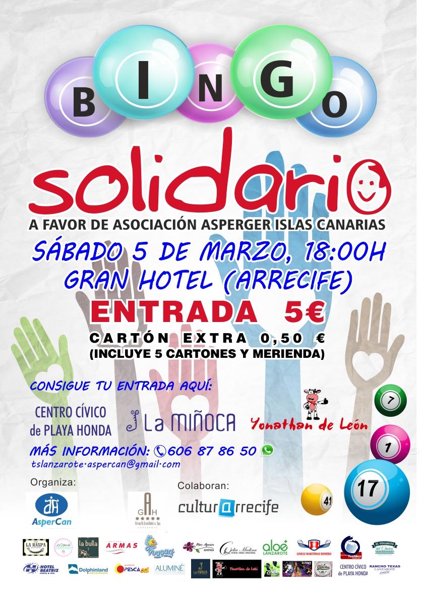 Para celebrar el Día Internacional del Síndrome de Asperger, la asociación en la isla,  ha organizado un Bingo Solidario en el Gran Hotel de Arrecife, previsto en un principio para el día internacional del Asperger, pero coincide con el I Congreso Nacional sobre Síndrome de Asperger que se celebrará en Gran Canaria los días 18, 19 y 20 de Febrero, donde estarán, entre otros ponentes, la trabajadora social y la psicóloga de la Asociación.