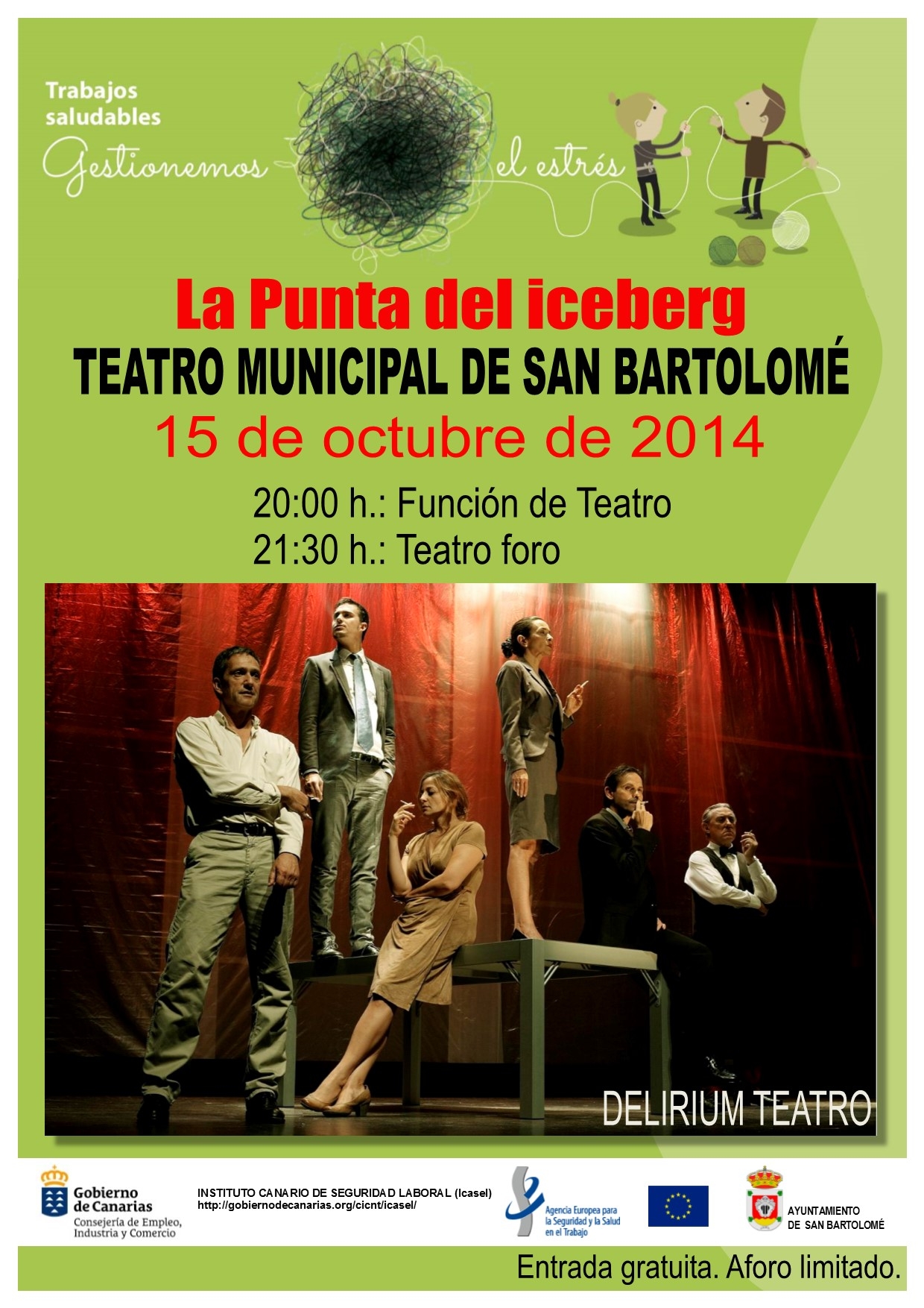 Con tal motivo, invitamos a todos los vecinos a la representación de la obra de teatro “La punta del iceberg” de Antonio Tabares, interpretada por la compaña Delirium Teatro, en el Teatro Municipal de San Bartolomé, San Bartolomé, Lanzarote. Tras la función teatral se desarrollará un Teatro foro con turno de preguntas atendidas por profesionales técnicos del Icasel. El acceso es gratuito hasta completar aforo.