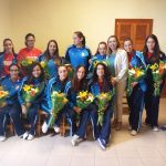 Eduardo Perera, entregó una placa a la Directora de la Asociación Antígona, Antonia Merchán, al concluir la función.
