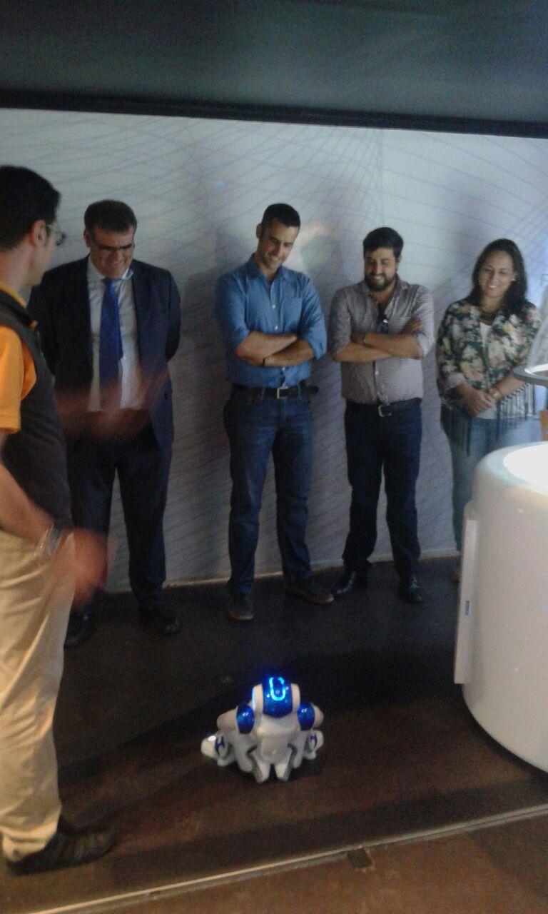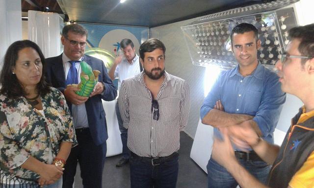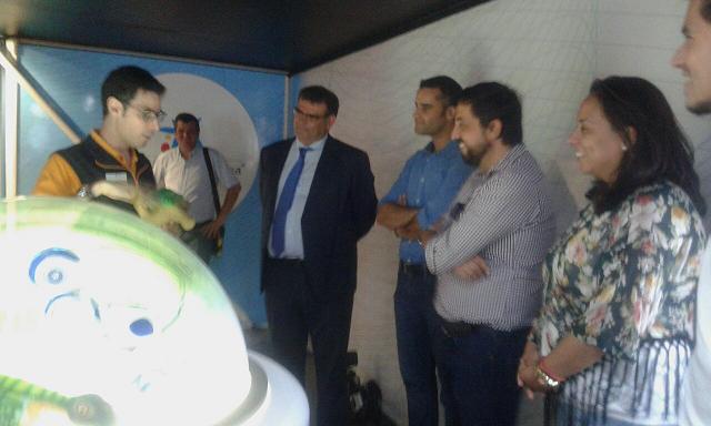 San Bartolomé (Lanzarote), 2 de julio de 2015.- El primer teniente alcalde del Ayuntamiento de San Bartolomé, David Rocío, la concejala de Juventud, Isabel Sosa, el concejal de Obras y Servicios Públicos, Alexis Tejera y el director de Área de Negocio de CaixaBank en Lanzarote y Fuerteventura, Antonio Armas León, han presentado hoy la muestra Tecnorrevolución. Una exposición itinerante con el fin de dar a conocer los avances de las tecnologías convergentes cuya aplicación ha aportado progresos impensables.
