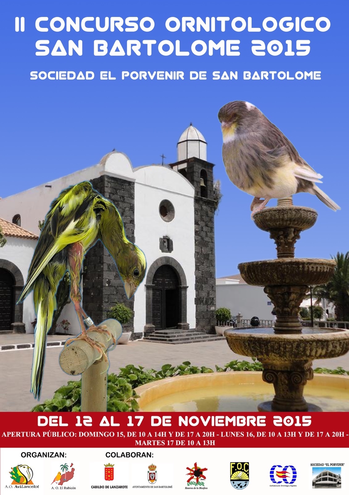 La Sociedad el Porvenir de San Bartolomé servirá de escenario para el “II Concurso Ornitológico” organizado por las asociaciones ornitológicas AviLancelot y Rubicón en colaboración con el Ayuntamiento de San Bartolomé y el Cabildo de Lanzarote, entre otros. El concurso contará con jurado especializado en la materia.
