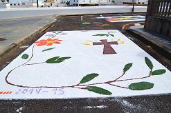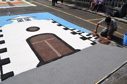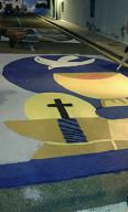San Bartolomé festejó el Corpus Christi con una arraigada tradición la confección de alfombras de sal que congrega a colectivos y grupos de amigos para su elaboración.