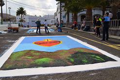 San Bartolomé contó desde las 10.00 horas del sábado, 6 de junio, con la tradicional confección de las alfombras de sal, en las calles Párroco San Martín, San Simón y Plaza León y Castillo.