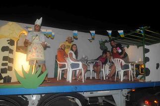 El desfile de carrozas que transcurrió desde el IES San Bartolomé hasta la calle Rubicón, contó con la animación musical de La Charanga Nomes13.