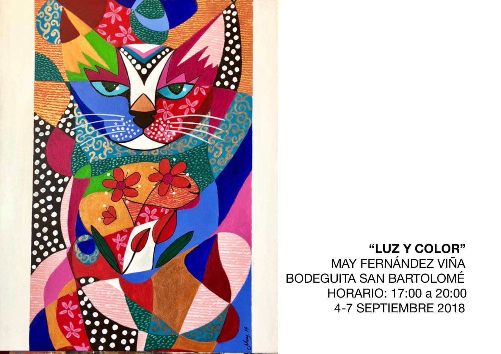 El día 4 de septiembre quedará inaugurada la exposición “Luz y Color”, de May Fernández Viña, en la Bodeguita de la Casa Cerdeña, en San Bartolomé. Estará abierta del 4 al 7 de septiembre en horario de 17.00 a 20.00 horas.