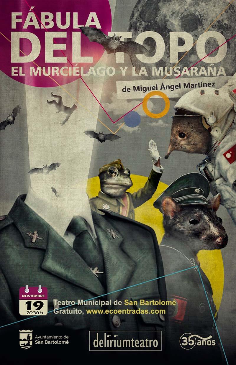 La fábula del topo, el murciélago y la musaraña a cargo de Delirium Teatro se representará en San Bartolomé el 19 de noviembre a las 20.30 horas. Entrada gratuita. Invitaciones en www.ecoentradas.com