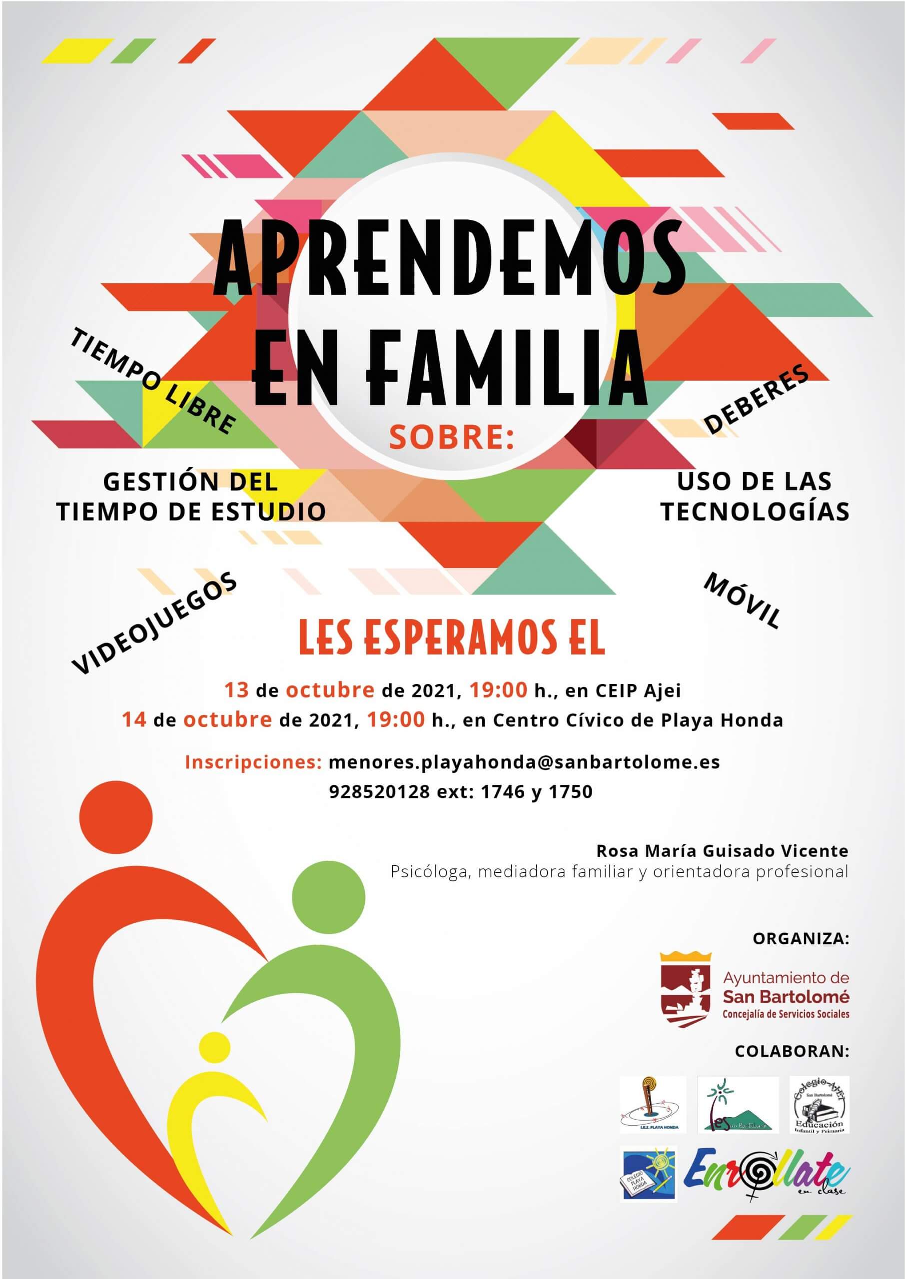 El 13 y 14 de octubre dan comienzo los “Talleres de Familia”. Inscríbete en menores.playahonda@sanbartolome.es o llamando al 928 520 128 extensiones 13 y 14 de octubre
