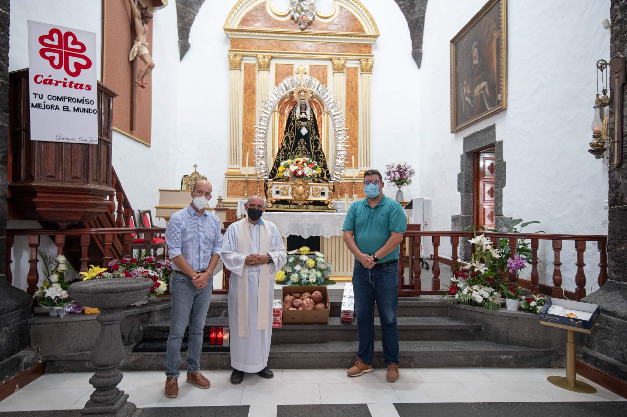 San Bartolomé entrega en la Ermita de Mancha Blanca y en la Casa Parroquial más de 350 kilos de alimentos en la tradicional ofrenda a la Virgen de Los Dolores