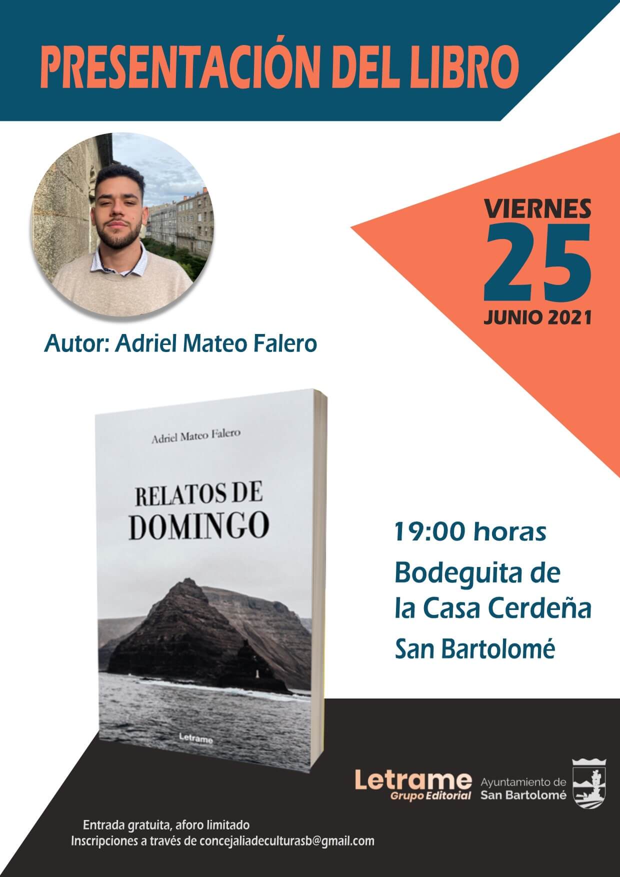 La Bodeguita de la Casa Cerdeña acoge el 25 de junio a las 19.00 horas la presentación del libro de Adriel Mateo “Relatos de domingo”