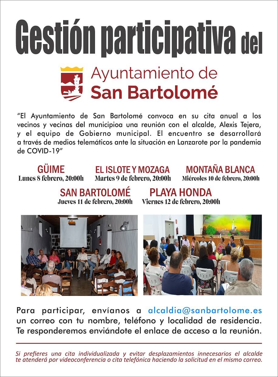 El Ayuntamiento de San Bartolomé convoca las reuniones vecinales anuales por videoconferencia para consensuar el programa de actuaciones y mantener la línea de gestión participativa municipal