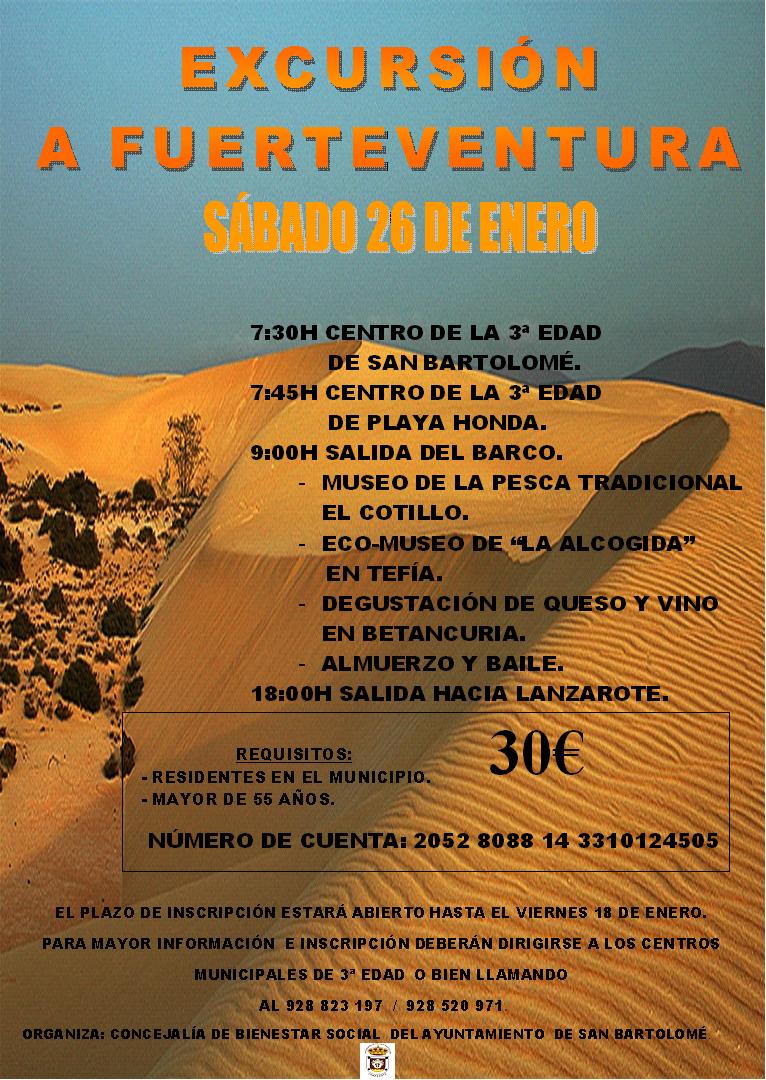 Los mayores del municipio, podrán disfrutar el 26 de enero, previa inscripción, con una excursión de un día a Fuerteventura…