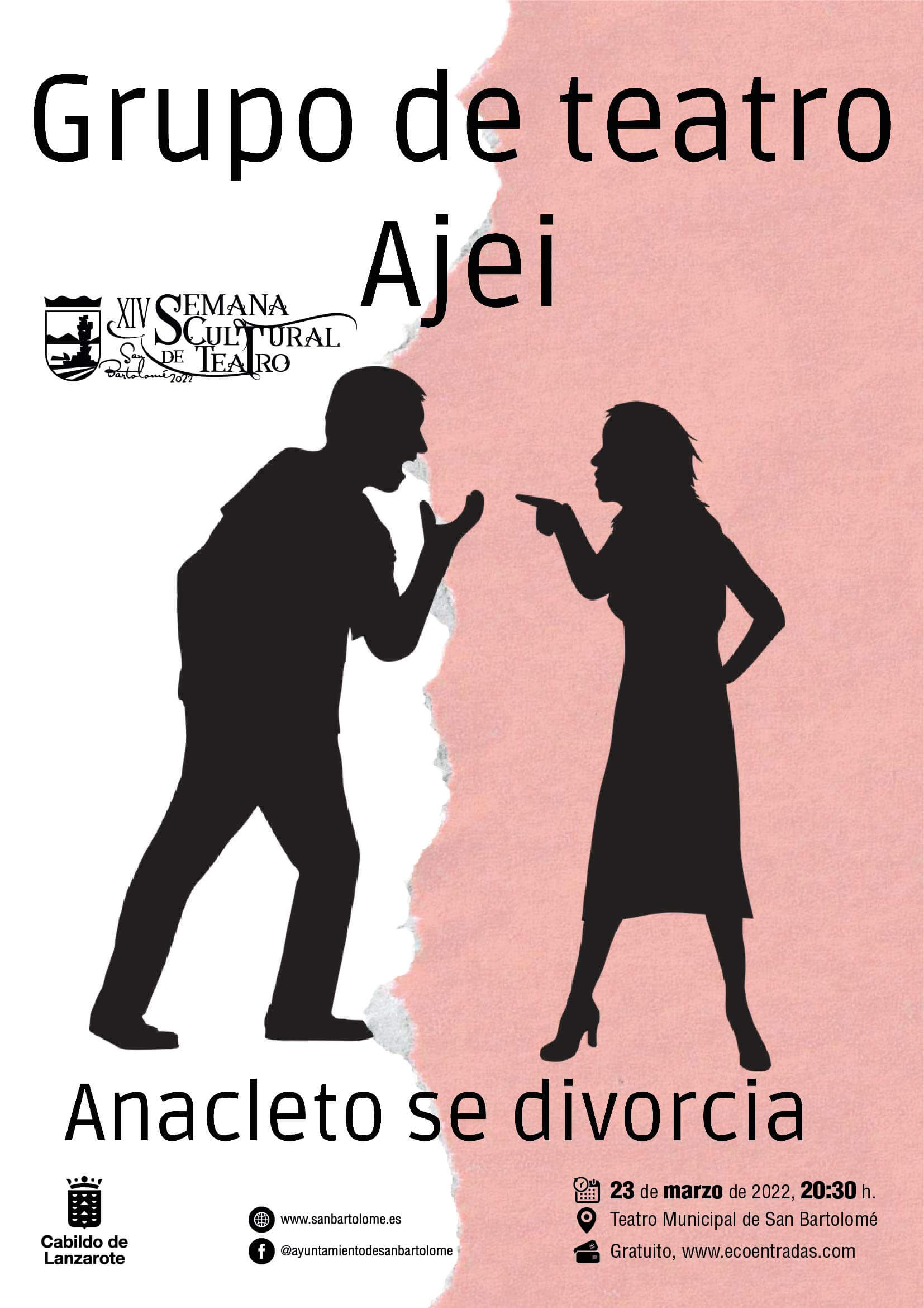 Hoy arranca la 14º Semana Cultural de Teatro de San Bartolomé con la representación de la obra ANACLETO SE DIVORCIA, a cargo de Ajei