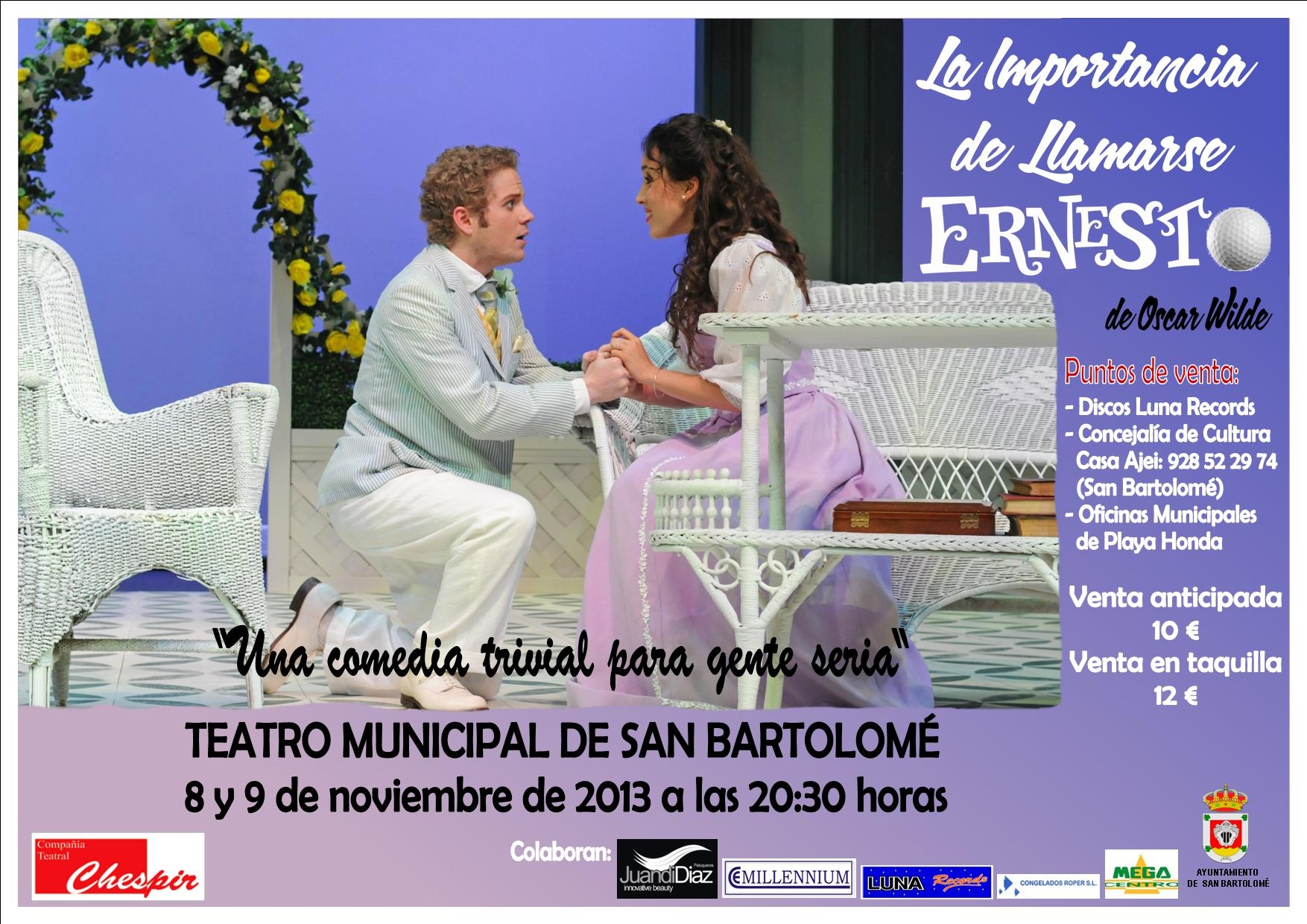 Actividad: La Compañía Teatral Chespir presenta: LA IMPORTANCIA DE LLAMARSE ERNESTO, (Oscar Wilde).