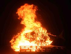 La quema del Guachinango se llevó a cabo tras las actuaciones, al anochecer, y cerró el acto acompañada por fuegos artificiales. Al Guachinango lo acompañaron viudas de la localidad haciéndole su homenaje hasta su despedida final entre lágrimas.