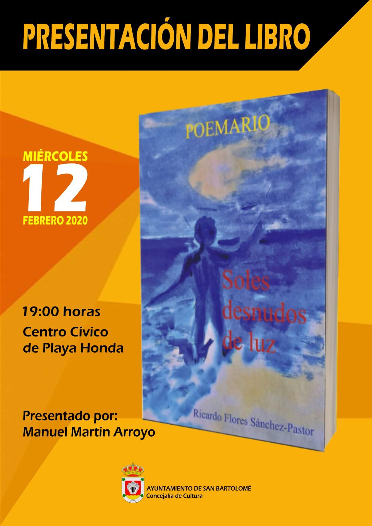 El día, 12 de febrero a las 19:00 horas, en el Centro Cívico de Playa Honda, conoceremos de la mano de Manuel Martín Arroyo, un poemario de realidades futuras, que se atreve a meter en sus páginas, todos esos momentos que todos y todas tenemos y que nos causan una lágrima y en ocasiones frustración.