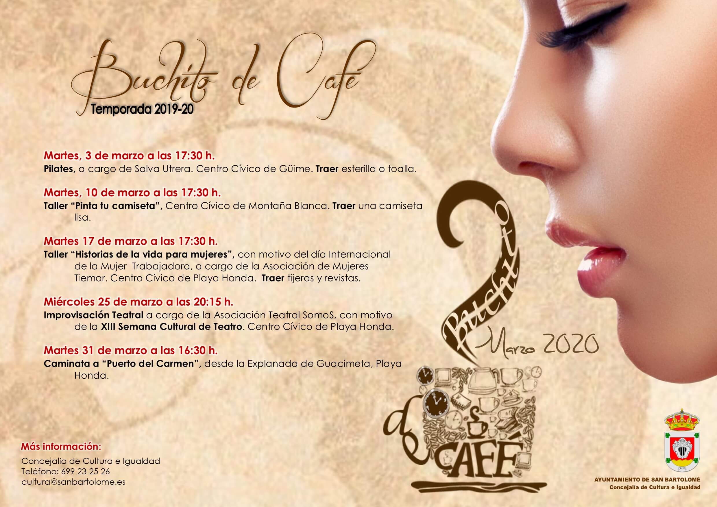 Dentro de la programación del mes de marzo del servicio municipal Buchito de Café incluye deporte, talleres, teatro y caminata.
