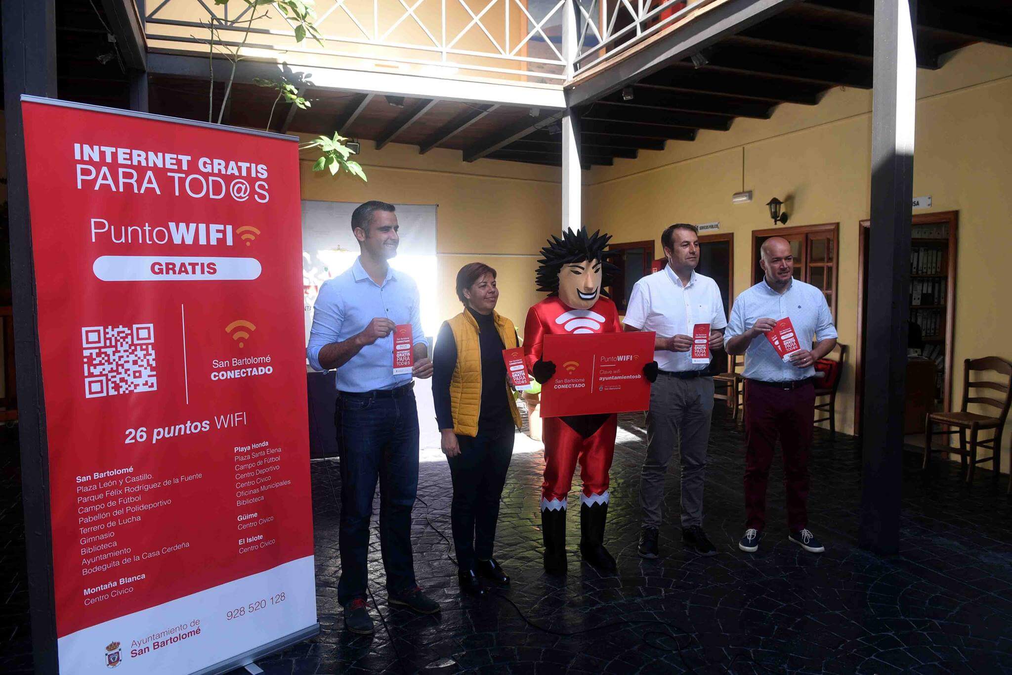San Bartolomé conectado, proyecto desarrollado desde el área de nuevas tecnologías del Ayuntamiento, delegada en Antonio Rocío, pretende acercar internet a todos los puntos del municipio, a través de un total de 26 puntos de wifi ubicados en las distintas localidades. La clave de usuario con la que podrán acceder los vecinos desde todos los puntos es la misma, ayuntamientosb, destaca Antonio Rocío. Este proyecto y obras han sido realizadas por la Ute TdE-TME DLIX, por una cuantía que asciende a 65.123€, más IGIC.