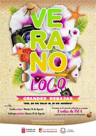 Desde hoy, 20 de julio y hasta el 16 de agosto estará vigente la Campaña “Verano Loco” que incluye rebajas y sorteos de 8 vales de 150€ para emplear en los comercios adscritos a la campaña, y un premio extra al comercio que más participaciones adquiera.