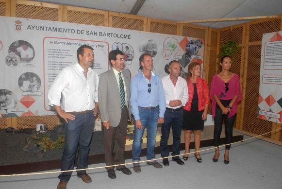Entre imágenes y poesía San Bartolomé representa inmuebles singulares,  el duro trabajo de cultivar la batata en jable o en rofe un cultivo tradicional como la lenteja o la vid. El stand muestra la Casa Ajei, la tradición vitivinícola, elementos de labranza, los molinos, y el gofio. Las maquetas han sido realizadas por los niños del CEIP El Quintero.
