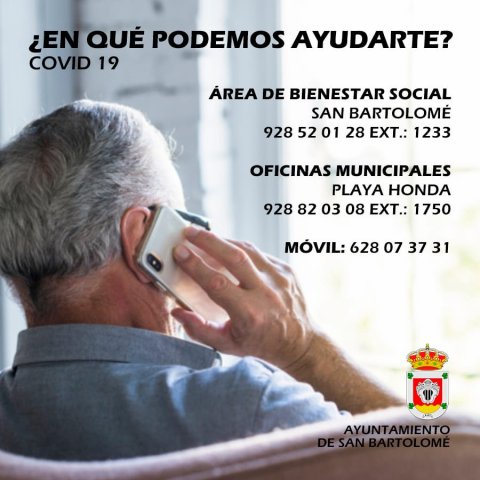 Cualquier vecino/a que se encuentre en esta situación no debe dudar y debe ponerse en contacto con el departamento de Bienestar Social, llamando a los teléfonos 928 928 52 01 28 extensión 1233 en San Bartolomé, 928 82 03 08 extensión 1750 en Playa Honda, al teléfono móvil 628 07 37 31 o enviando un correo electrónico a serviciossociales@sanbartolome.es