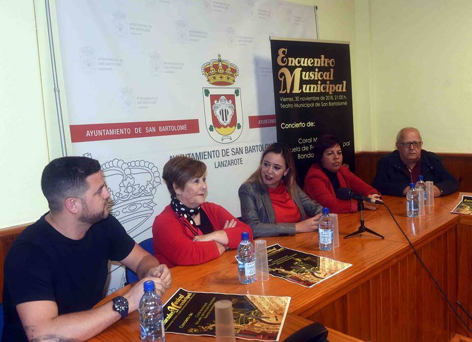 Hoy, San Bartolomé ha presentado en rueda de prensa el I Encuentro Musical Municipal, contando el acto con la presencia de con la presencia de la alcaldesa, María Dolores Corujo, la concejal de cultura, Alma Mª González Mauri, el director de la Escuela de Folclore Municipal, Leo García Corujo, la vicepresidenta de la Coral Municipal Mary Nieves Morales (Vicepresidenta), el presidente de la Asociación Cultural y Musical Emine “ACUME”, Carlos Curbelo Luzardo.