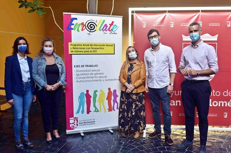 El Ayuntamiento de San Bartolomé, dirigido por Alexis Tejera, ha puesto en marcha, a través del área de Igualdad, delegada en Lola Fernández, la quinta edición del proyecto anual “Enróllate en clase”, un programa de educación afectivo-sexual con perspectiva de genero destinado al alumnado de la ESO del municipio, que está teniendo lugar este nuevo curso 2020/2021.