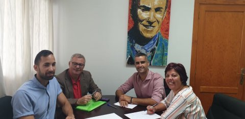 En la mañana de hoy el alcalde de San Bartolomé, Alexis Tejera, acompañado por la concejal de Educación Alma María González, se reunió en la Casa Consistorial con Antonio Ojeda Domínguez, Jefe de Sección de Escuelas Taller, Talleres de Empleo y PFAE (Programas de Formación en Alternancia con el Empleo), del Servicio Canario de Empleo y técnicos del área.