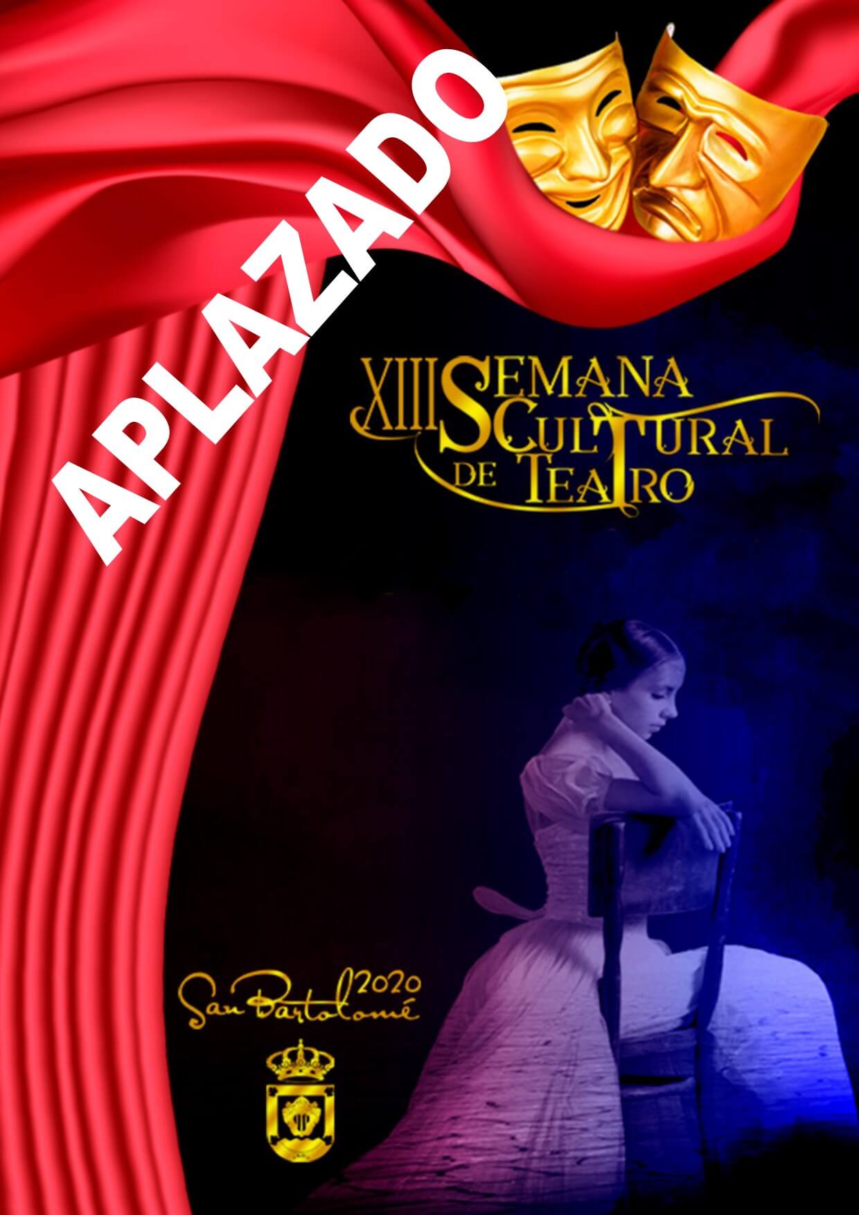 La concejalía de Cultura del Ayuntamiento de San Bartolomé, dirigida por Isidro Pérez, ha informado que con motivo de la crisis sanitaria generada por el nuevo tipo de Coronavirus – COVID 19, el consistorio se ve en la necesidad de aplazar la XIII Semana Cultural del Teatro.