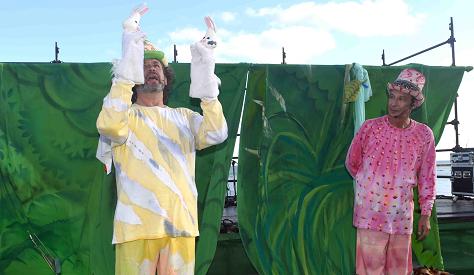 Con el mar de fondo Teatro Alegre presentó “La gallina de los huevos de oro, Los dos conejos y otras fábulas”, de la mano de los alegres clowns Claudio Frutos y Expósito Chimeneas que adentraron a los asistentes en el mundo de las fábulas, una apuesta de diversión con historias esenciales, divertidas y alegres. Sumergieron al público familiar en la fascinación y reflexiones de las fábulas, a través de “Los conejos de Iriarte, El pastor mentiroso y La Gallina de los huevos de oro”, todas de Esopo, relatos hecho teatro, con gran magia.