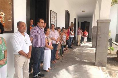Corporación Municipal de San Bartolomé y vecinos del municipio se sumaron en las puertas de la Casa Consistorial al minuto de silencio que se desarrolló en todas las instituciones de Canarias.