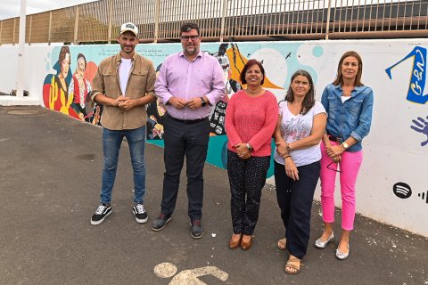 En la mañana de hoy el alcalde y la concejala visitaron el centro pudiendo conocer la obra concluida, acompañados por Iván T., y la directora del IES Playa Honda, Yolanda Luis-Ravelo, y Raquel Plans, profesora de arte de dicho centro. El alumnado ha colaborado para que uno de los muros contemple esta obra artística.