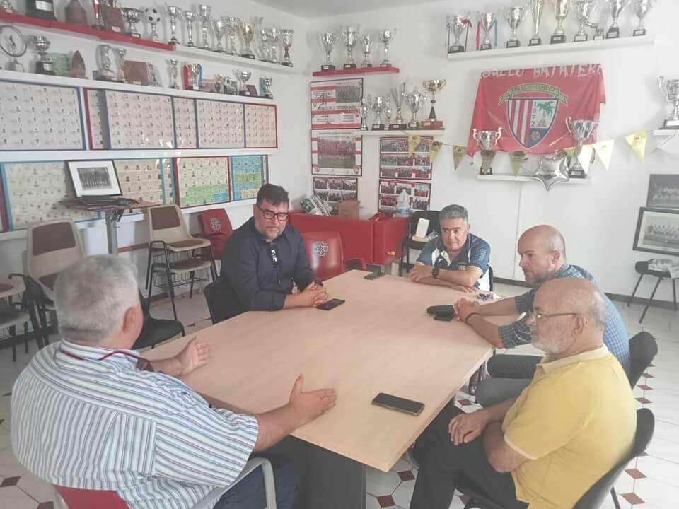 El alcalde del Ayuntamiento de San Bartolomé, Isidro Pérez, junto al concejal de Deportes, Raúl de León, mantuvieron en la mañana de este viernes una reunión con José Juan Arencibia, presidente de la Federación Canaria de fútbol, José Antonio Valido, presidente Delegación Fútbol de Lanzarote y Francisco Martín, directivo de San Bartolomé C.F.